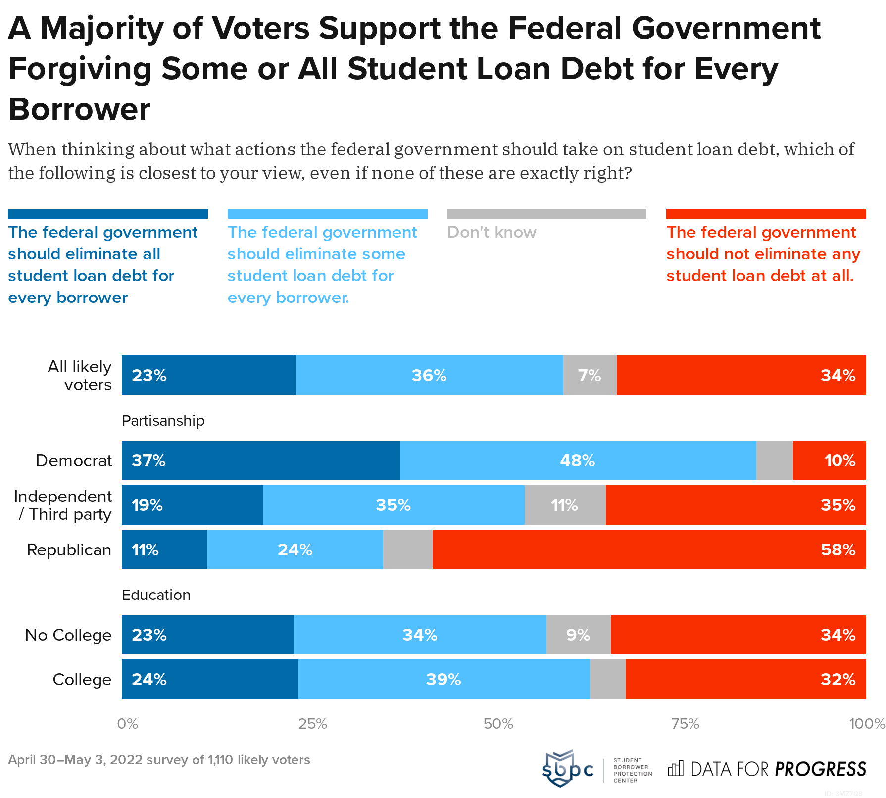 Thursday, May 5, 2022 | WASHINGTON, D.C. — As President Biden considers executive action to cancel student debt and the Senate Banking Committee prepares for a major student loan-focused hearing, Student Borrower Protection Center (SBPC) and Data for Progress released the latest in a series of polls tracking the impact of student debt on American families.